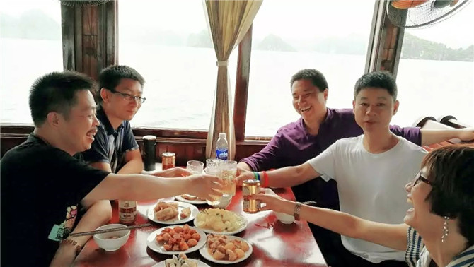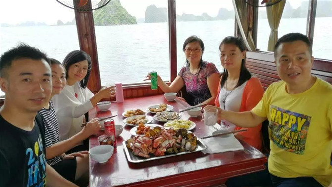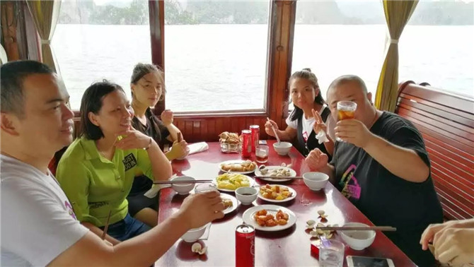 16日天氣轉(zhuǎn)晴,阿松說他們信奉燒香拜佛,前天晚上燒香至凌晨4點祈禱天氣晴朗讓我們?nèi)ンw驗下龍灣的風(fēng)采,果然皇天不負有心人。于是18羅漢愉快地開啟了早餐時刻:越南的牛肉粉真的巨好吃,每個人至少只吃了3碗而已。