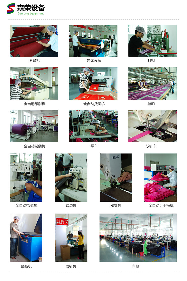 主要生產(chǎn):手袋,環(huán)保袋,真皮|PU皮手袋,無紡布袋,牛津布袋,尼龍袋,帆布袋,棉布袋,麗新布袋,竹纖維布袋,經(jīng)緯紙袋,石頭紙袋,針刺無紡布袋(毛氈布袋),絨布袋,編織覆膜袋,覆膜無紡布袋,酒袋,服飾包裝袋,西服套,圍裙,熱轉(zhuǎn)印袋,保溫袋(冰袋),防塵套,超聲波熱壓袋,玩具公仔袋等車縫制品。