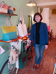 她決定獨(dú)立的時(shí)候,沒有足夠的資金開店。那時(shí)候,她自然想到的是自行車。她離開工廠后,自己設(shè)計(jì)自行車上的木質(zhì)機(jī)關(guān)箱子,帶著自己手工的帆布製品,向谷根千的街道騎上去了。天氣好壞影響生意,有時(shí),被路過人嘲弄??墒牵戎械钠渌麕煾狄恢惫膭?lì)她。她在谷中師傅的支持之下挨了五年,終于在谷中有了小店舖,在那里製作帆布包而銷售。她說,有谷中就能夠堅(jiān)持下去。