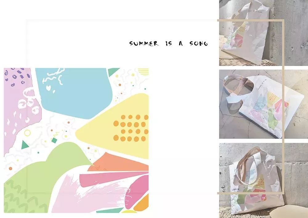 Gradual Summer以Tyvek? 1082D 為主要材質(zhì),印上一系列色彩絢麗的圖案,成為一系列夏天主題的包袋,每個包袋都是一個夏日的故事。