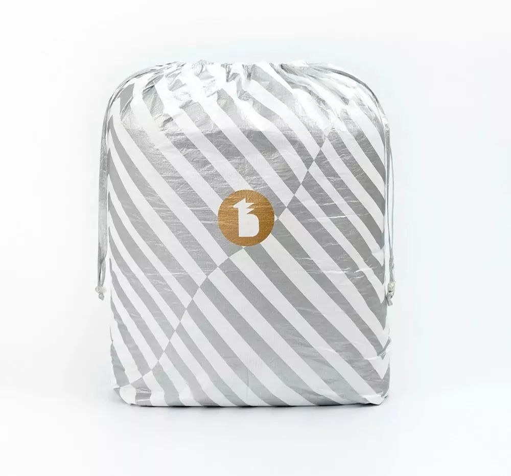 Tyvek? 材料比紙張更輕盈,卻堅韌有質(zhì)感,光滑不掉屑,用做床上用品的包裝,可以很好地阻隔外界灰塵,確保使用者的健康。菠蘿斑馬床上亞麻四件套包裝袋在Tyvek? 上印上金色Logo,再配上銀色條紋,彰顯大氣。